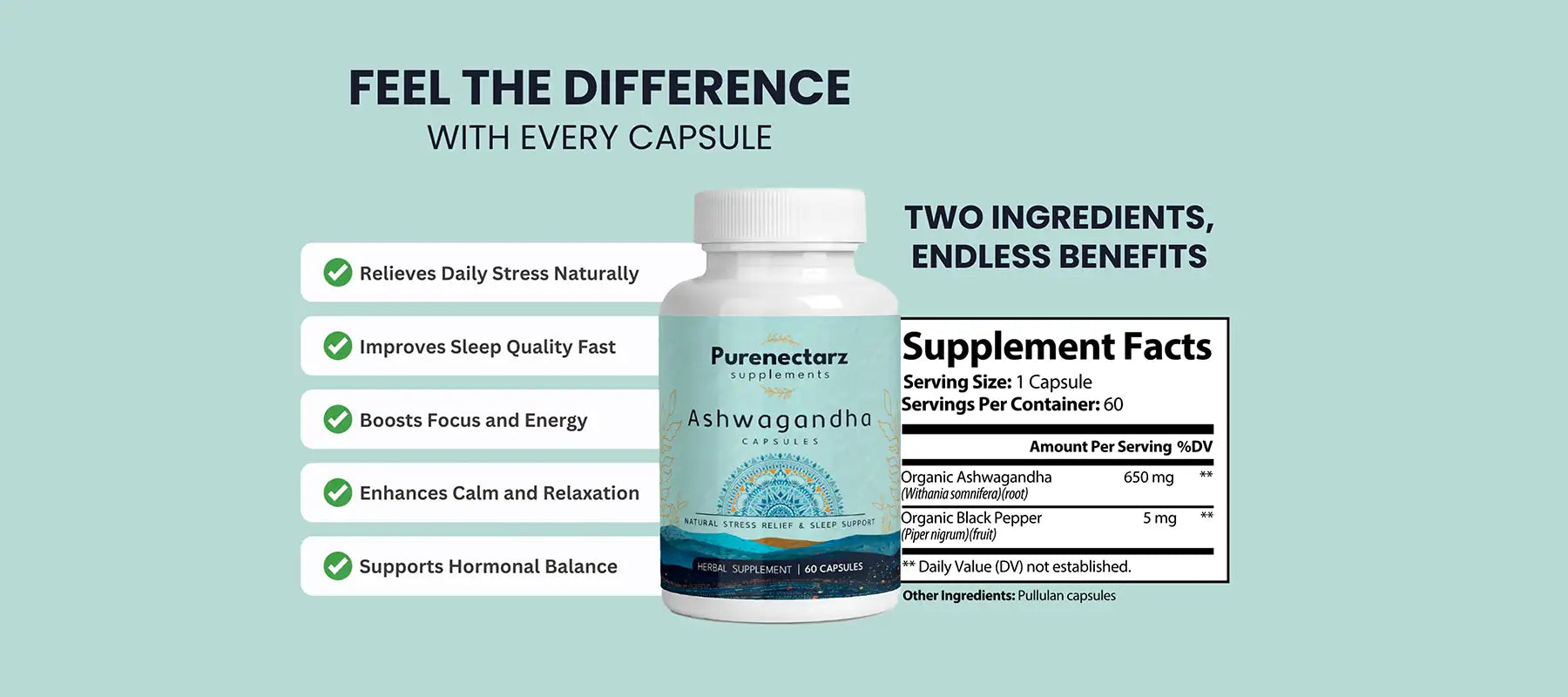 Our formula uses organic Ashwagandha with black pepper for superior absorption, is free from additives, and is rigorously tested for quality.